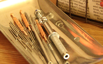 現在、最もポピュラーな鍼で、太さは髪の毛ほどのものを用います。